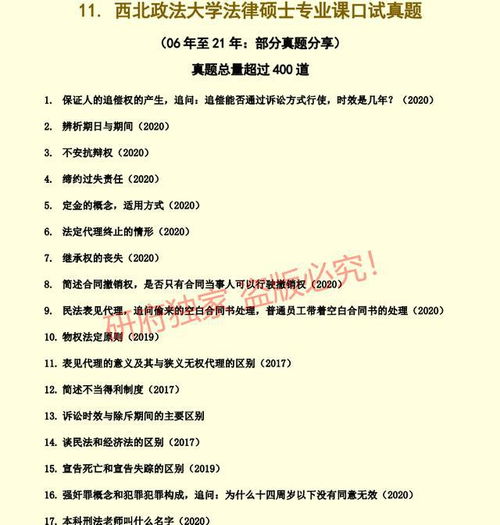 除了以上主要科目外,西南政法大学法律硕士考试还可能包括法律英语、案例分析、答辩等内容。希望考生能够通过扎实的复习和准备,取得优异的成绩!