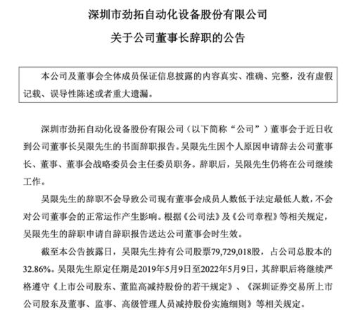 在一个平静的周五下午,某公司发布了一份简短的公告,宣布其董事长因个人原因辞职。这一消息如同一颗重磅炸弹,在业界引起了轩然大波。董事长作为公司的灵魂人物,其离职无疑会对公司的运营和战略规划产生深远的影响。